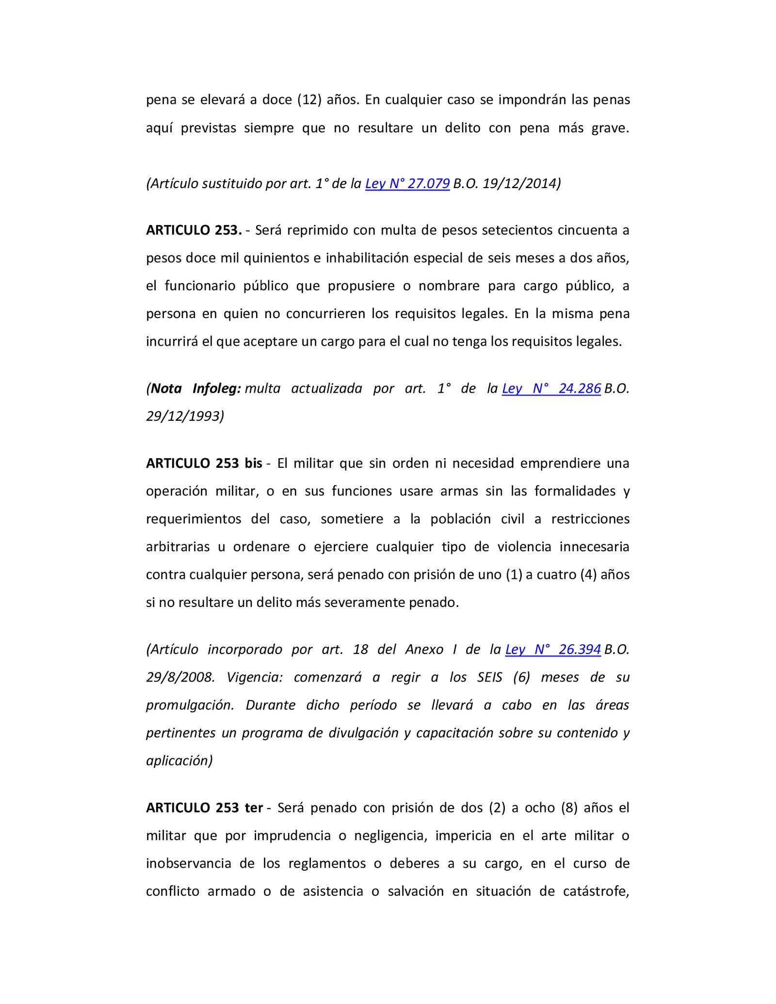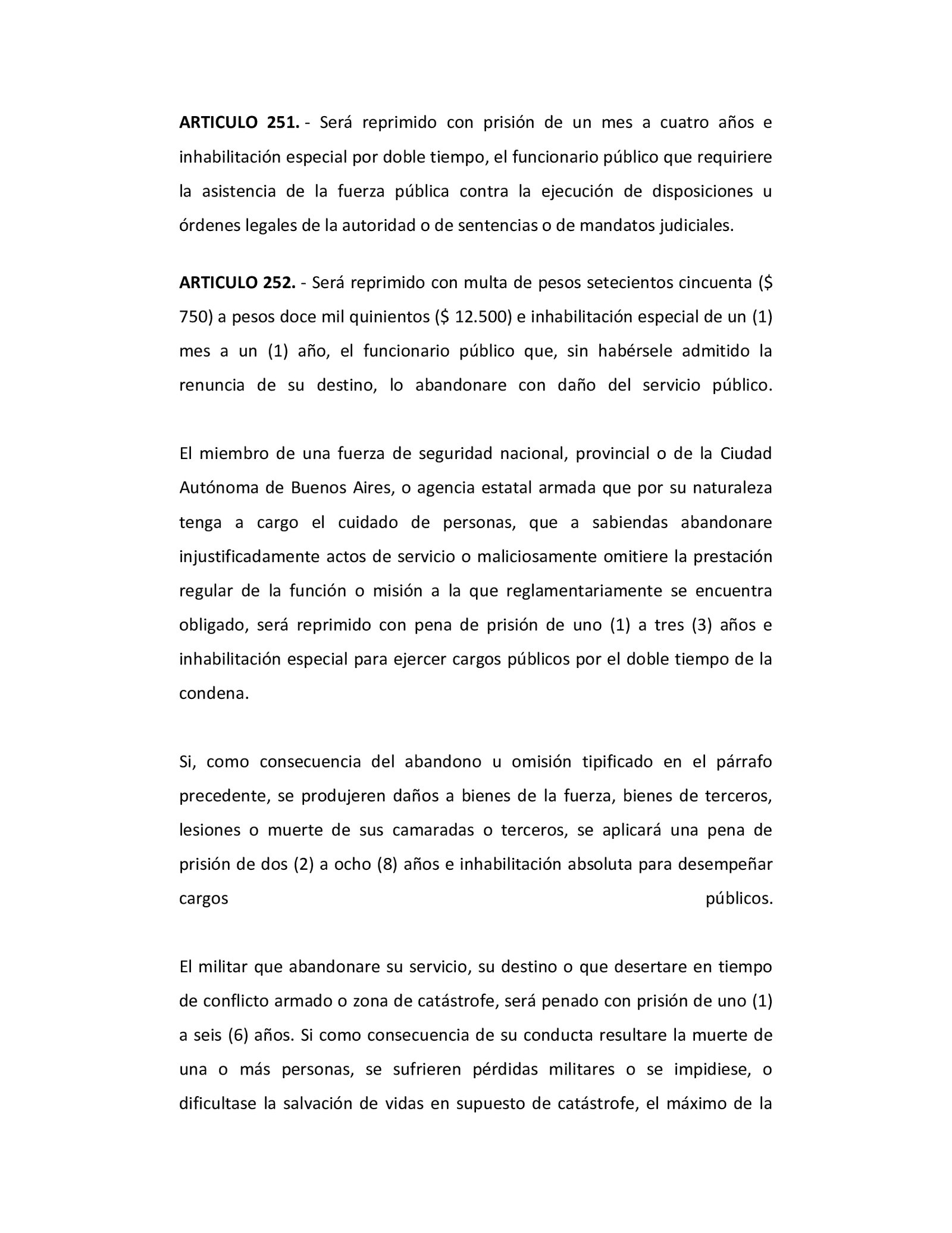 «En uno u otro caso, inhabilitación absoluta perpetua, siempre que el hecho no se halle comprendido en otra disposición de este código, todo argentino o toda persona que deba obediencia a la Nación por razón de su empleo o función pública, que tomare las armas contra ésta, se uniere a sus enemigos o les prestare cualquier ayuda o socorro», continúa.