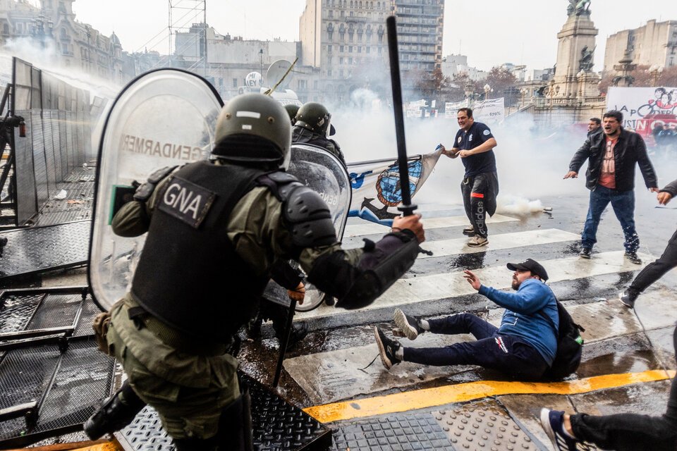 Martín Dirroco, de 37 años, trabaja desde hace 18 años en Madygraf, una empresa recuperada en la que el es operario gráfico, aunque tuvo varias funciones. Ahora incluso trabaja en tareas de albañilería para agrandar la juegoteca de la guardería de la planta. Había ido a la movilización con compañeros/as de trabajo. «Estábamos en Congreso y empezamos a a sentir el gas lacrimógeno, nos empezó a arder la garganta, se ponía complicado y nos fuimos retirando, cada vez empezaron a escuchar más disparos, se veía la represión. Nos fuimos creo que por Avenida de Mayo, yo no conozco bien la Capital. La que nos lleva directo al obelisco. De repente empezó a venir mucha gente, intentamos irnos y aparecieron unas siete motos. Iban de a dos, el de atrás apuntaba. Se bajan, nos dicen que nos quedemos quietos. Disparan y gritan ‘todos contra la pared’. Empezaron los empujones y ahí me agarran y me tiran al piso. Me aferré a mi mochila para no golpearme», narra. Entre los lugares por donde lo pasearon, Martín pasó la noche en la alcaidía 4. «Tuvimos que dormir en un patio con las esposas puestas», cuenta. Cuando declaró contó lo que había pasado, que trabaja de ocho a cuatro y que se ocupa mucho de su hija de cinco años. «Tengo miedo de volver a quedar detenido, es injusto todo, quiero seguir con mi familia y mi vida normal», imploró.