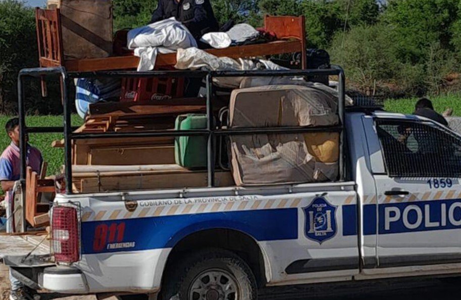 Guanca contó que la policía llegó en móviles a las 6.30 del lunes último, acompañada por otros hombres que portaban machetes. Denunció además que la fuerza de seguridad llegó acompañada de vehículos del municipio vallisto. «Escuché ruidos de machetazos, como que estaban cortando todo. Eso me despertó. Cuando logré vestirme los tenía en la casa. Violentaron todo», rememoró.